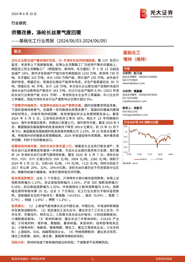 【光大证券】【20240610】20240610-光大证券-基础化工行业周报:供需改善,涤纶长丝景气度回暖-26页