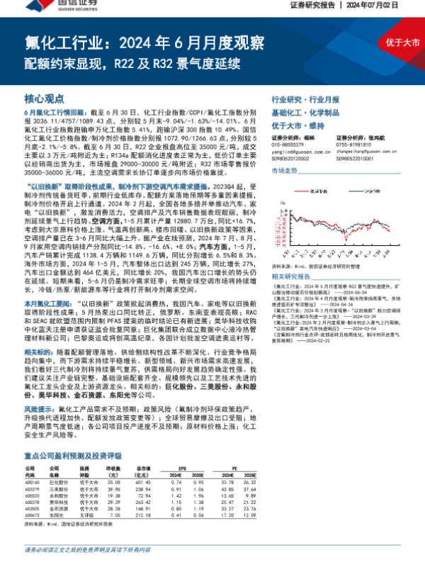 【国信证券】【20240702】2024年6月月度观察:配额约束显现,R22及R32景气度延续-37页