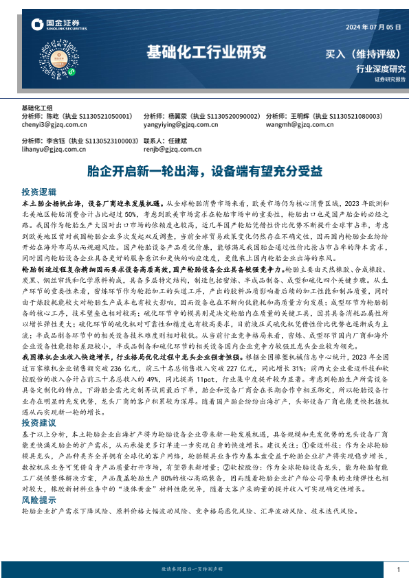 【国金证券】【20240705】基础化工行业研究:胎企开启新一轮出海,设备端有望充分受益-23页