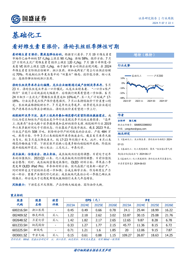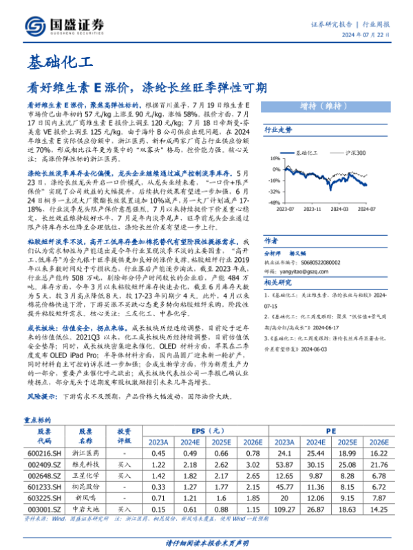 【国盛证券】【20240722】基础化工行业周报:看好维生素E涨价,涤纶长丝旺季弹性可期-17页