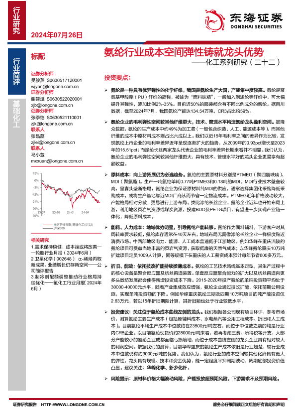 【东海证券】【20240726】氨纶行业成本空间弹性铸就龙头优势-12页