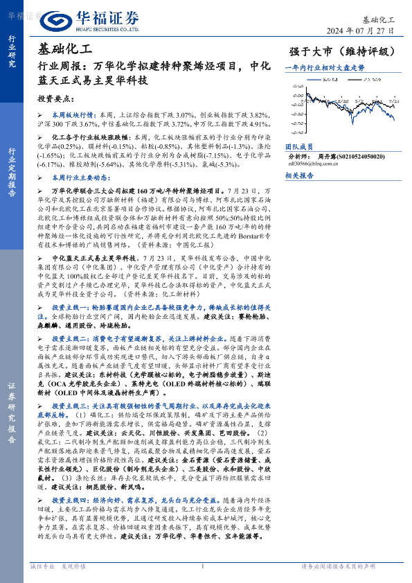 【华福证券】【20240727】基础化工行业周报:万华化学拟建特种聚烯烃项目,中化蓝天正式易主昊华科技-23页
