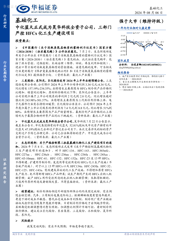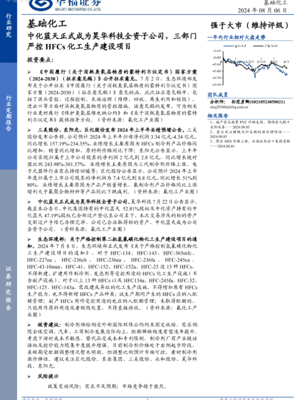 【华福证券】【20240806】基础化工:中化蓝天正式成为昊华科技全资子公司,三部门严控HFCs化工生产建设项目-11页