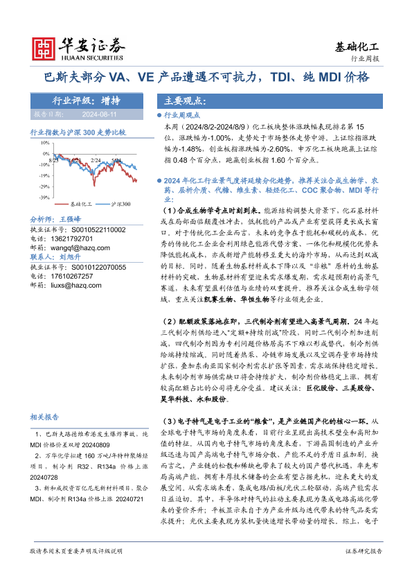 【华安证券】【20240811】基础化工行业周报:巴斯夫部分VA、VE产品遭遇不可抗力,TDI、纯MDI价格-27页