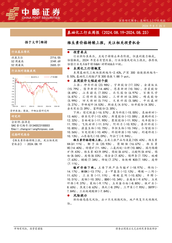 【中邮证券】【20240825】20240825-中邮证券-基础化工行业周报:维生素价格持续上涨,关注相关投资机会-15页