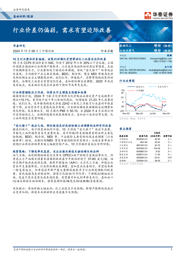 【华泰证券】【20241106】基础材料 能源行业月报:行业价差仍偏弱,需求有望边际改善-27页