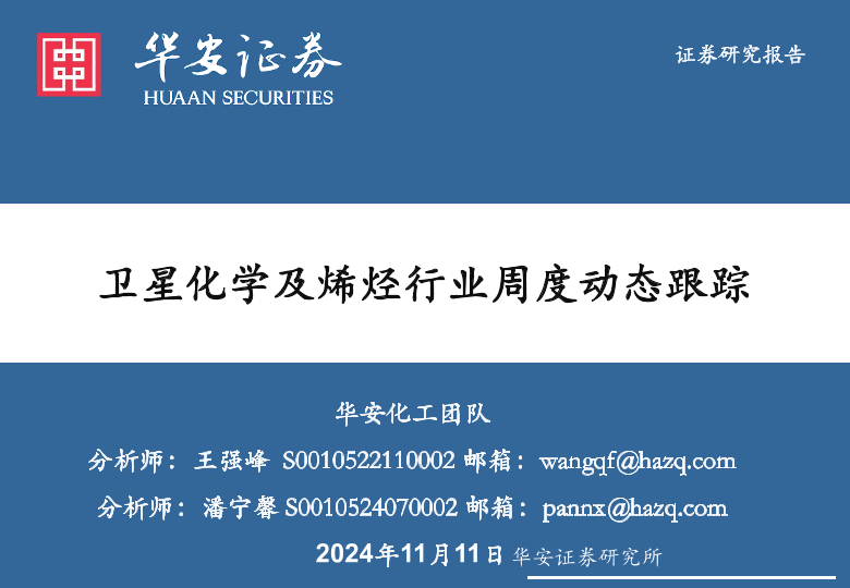 【华安证券】【20241111】卫星化学及烯烃行业周度动态跟踪-34页