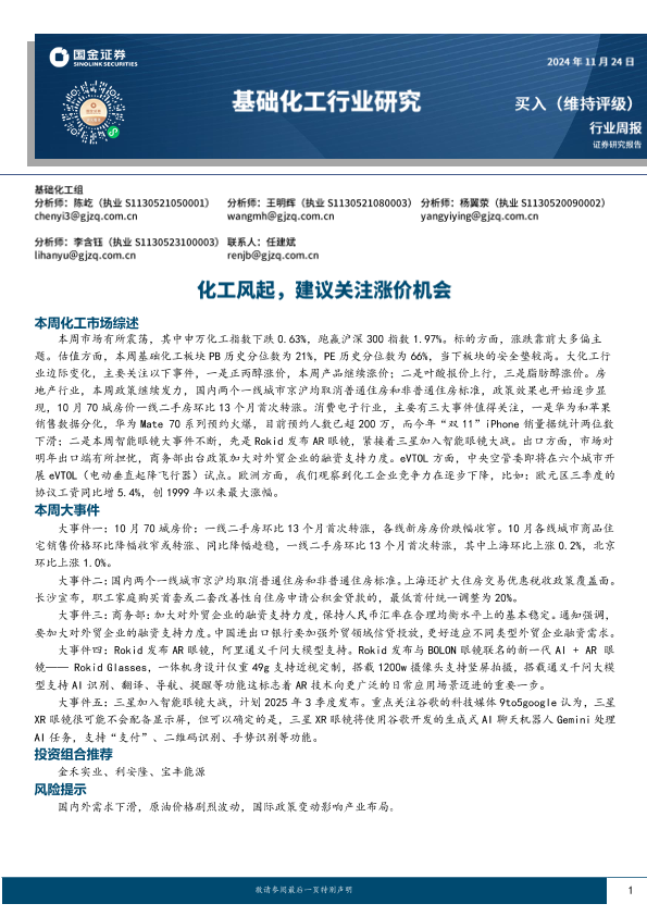 【国金证券】【20241124】基础化工行业周报:化工风起,建议关注涨价机会-23页