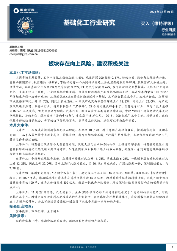 【国金证券】【20241201】基础化工行业研究:板块存在向上风险,建议积极关注-20页