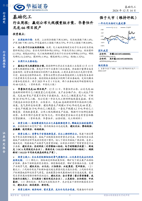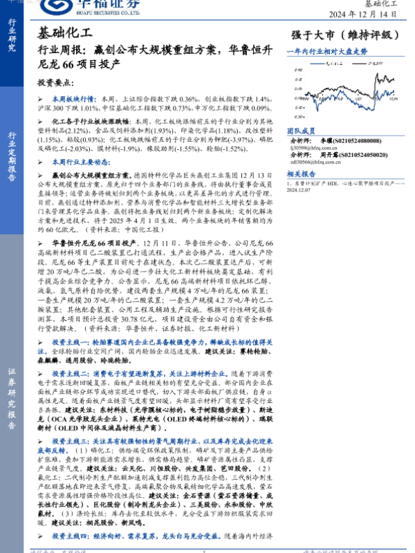 【华福证券】【20241214】基础化工行业周报:赢创公布大规模重组方案,华鲁恒升尼龙66项目投产-22页