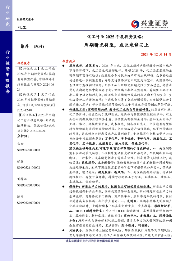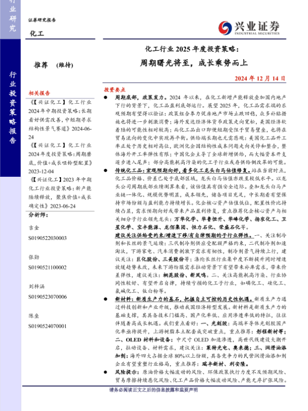 【兴业证券】【20241214】化工行业 2025年度投资策略:周期曙光将至,成长乘势而上-42页