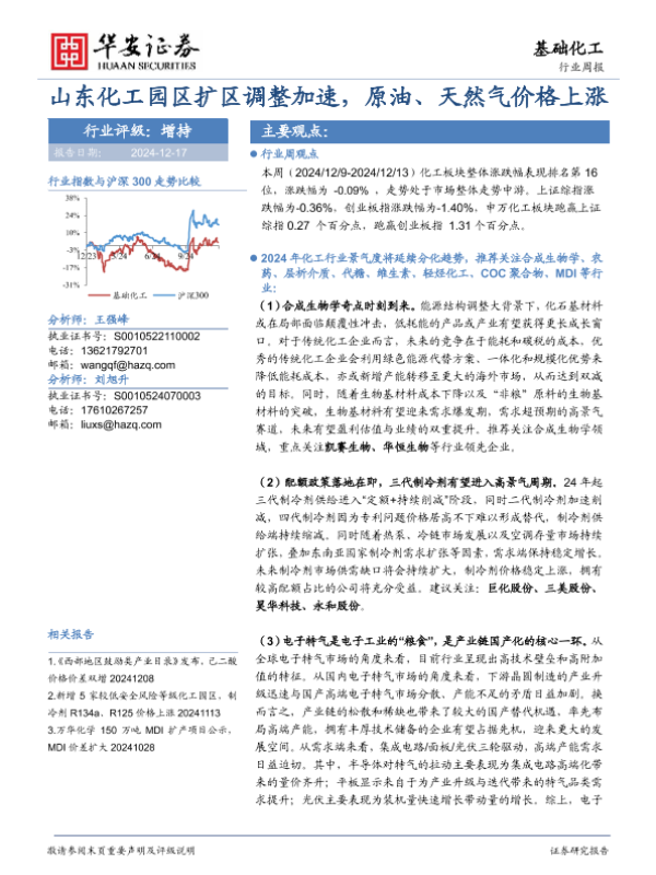【华安证券】【20241217】基础化工行业周报:山东化工园区扩区调整加速,原油、天然气价格上涨-30页