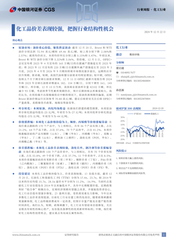 【银河证券】【20241222】20241222-中国银河-化工行业行业周报:化工品价差表现较强,把握行业结构性机会-19页