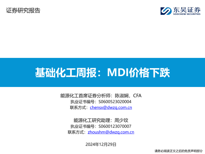 【东吴证券】【20241229】基础化工周报:MDI价格下跌-18页