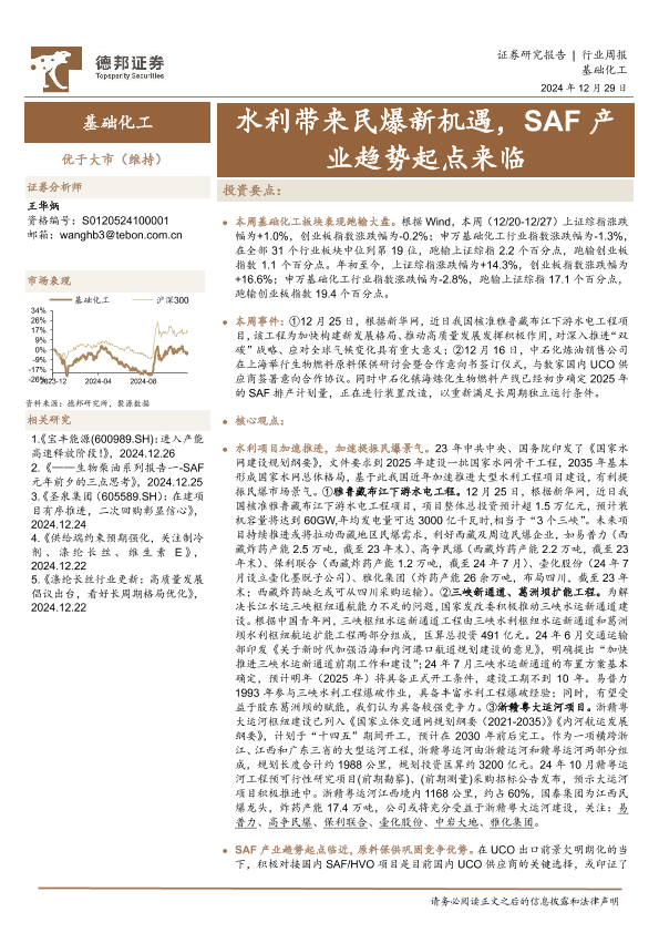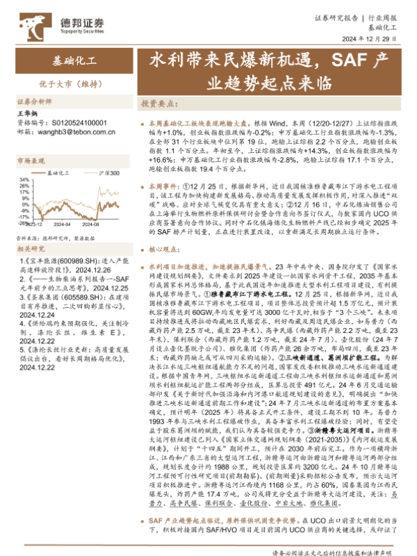 【德邦证券】【20241229】基础化工行业周报:水利带来民爆新机遇,SAF产业趋势起点来临-44页