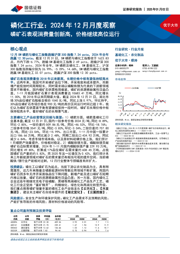 【国信证券】【20250102】磷化工行业:2024年12月月度观察-磷矿石表观消费量创新高,价格继续高位运行-26页