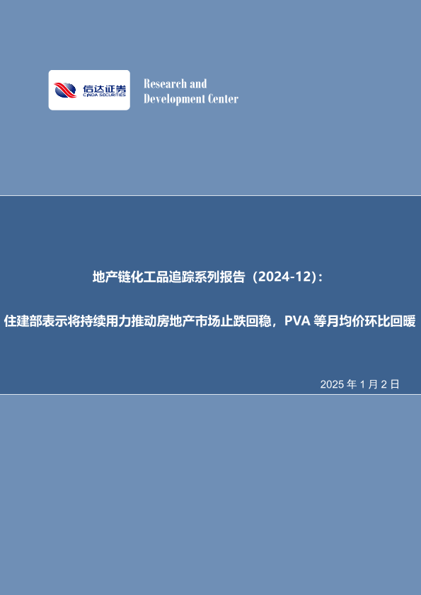 【信达证券】【20250102】地产链化工品追踪系列报告(2024-12):住建部表示将持续用力推动房地产市场止跌回稳,PVA等月均价环比回暖-26页