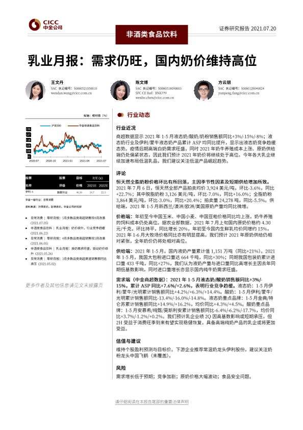 【中金公司】【20210720】非酒类食品饮料行业:乳业月报,需求仍旺,国内奶价维持高位-17页