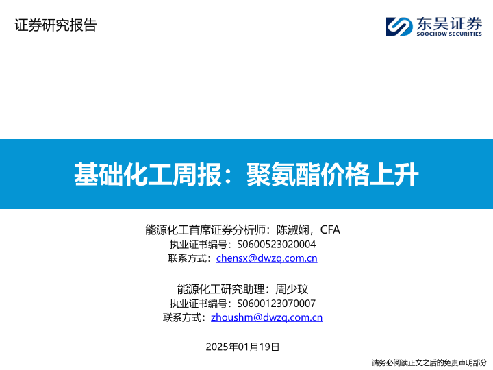 【东吴证券】【20250119】基础化工周报:聚氨酯价格上升-18页
