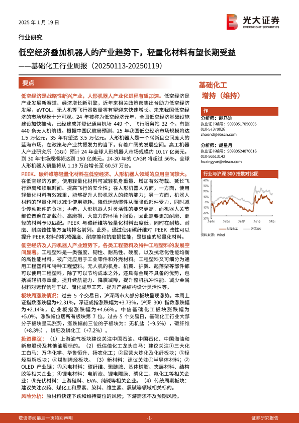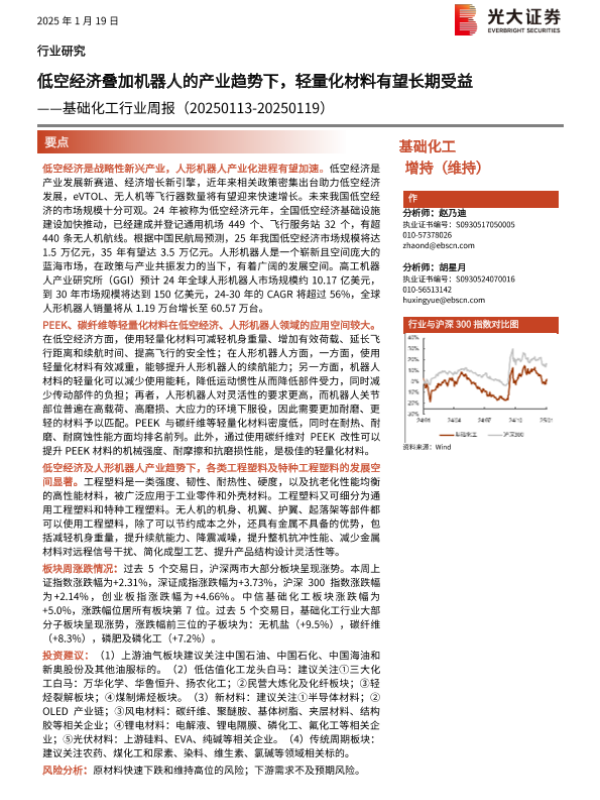 【光大证券】【20250119】基础化工行业周报:低空经济叠加机器人的产业趋势下,轻量化材料有望长期受益-28页