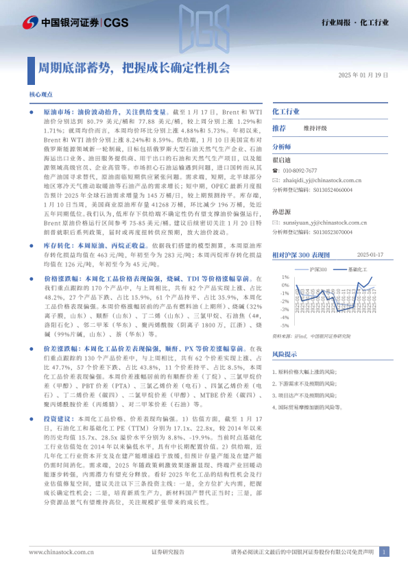 【银河证券】【20250119】20250119-中国银河-化工行业周报:周期底部蓄势,把握成长确定性机会-19页