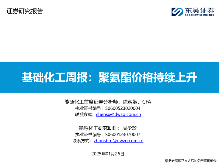 【东吴证券】【20250126】基础化工周报:聚氨酯价格持续上升-18页