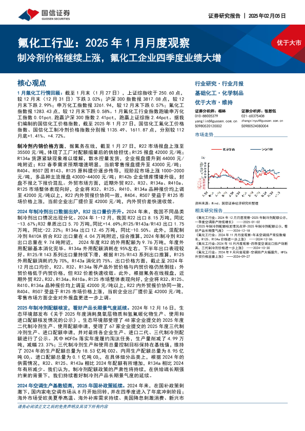 【国信证券】【20250205】2025年1月月度观察:制冷剂价格继续上涨,氟化工企业四季度业绩大增-26页