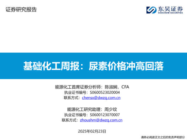 【东吴证券】【20250223】基础化工周报:尿素价格冲高回落-18页