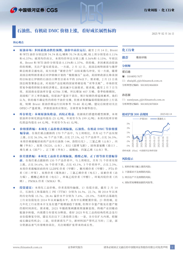 【银河证券】【20250216】20250216-中国银河-化工行业行业周报:石油焦、有机硅DMC价格上涨,看好成长属性标的-19页