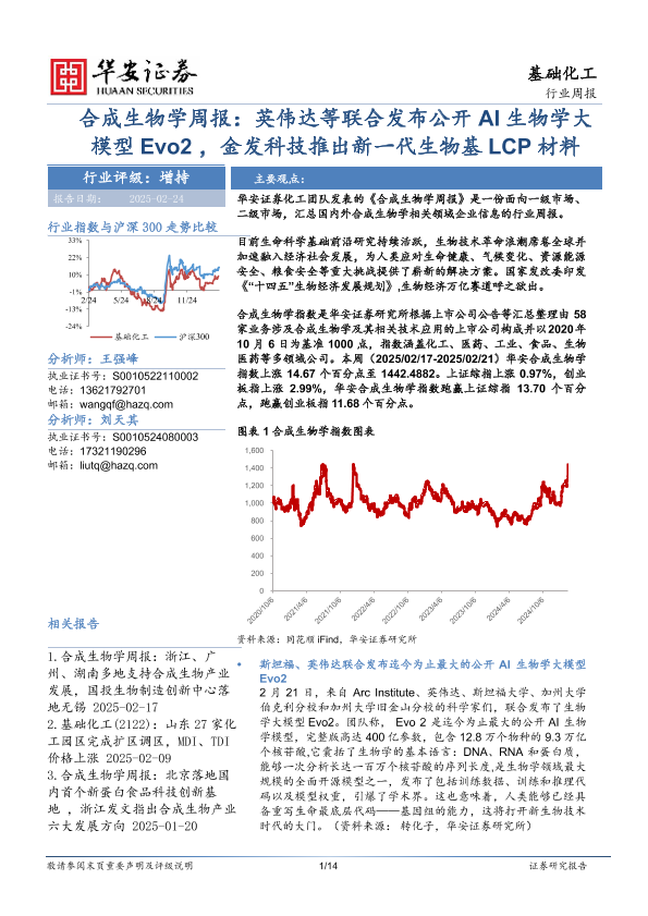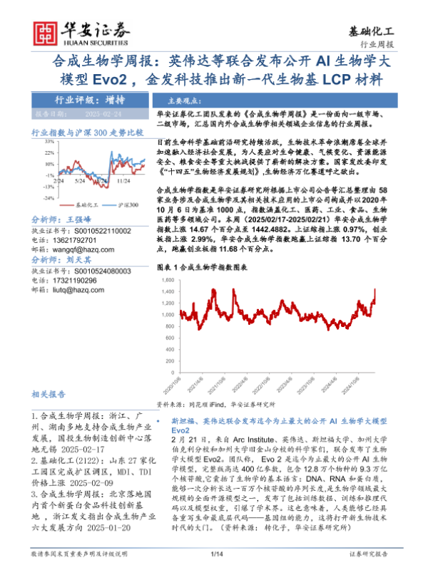 【华安证券】【20250224】20250224-华安证券-合成生物学周报:英伟达等联合发布公开AI生物学大模型Evo2,金发科技推出新一代生物基LCP材料-14页