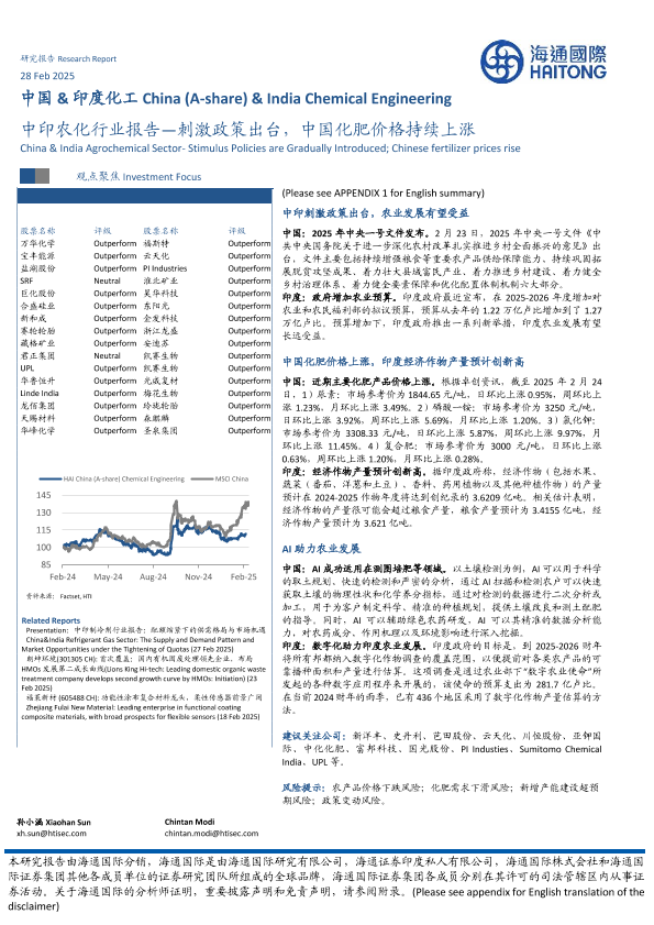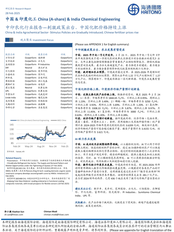 【海通国际】【20250228】中印农化行业报告:刺激政策出台,中国化肥价格持续上涨-17页