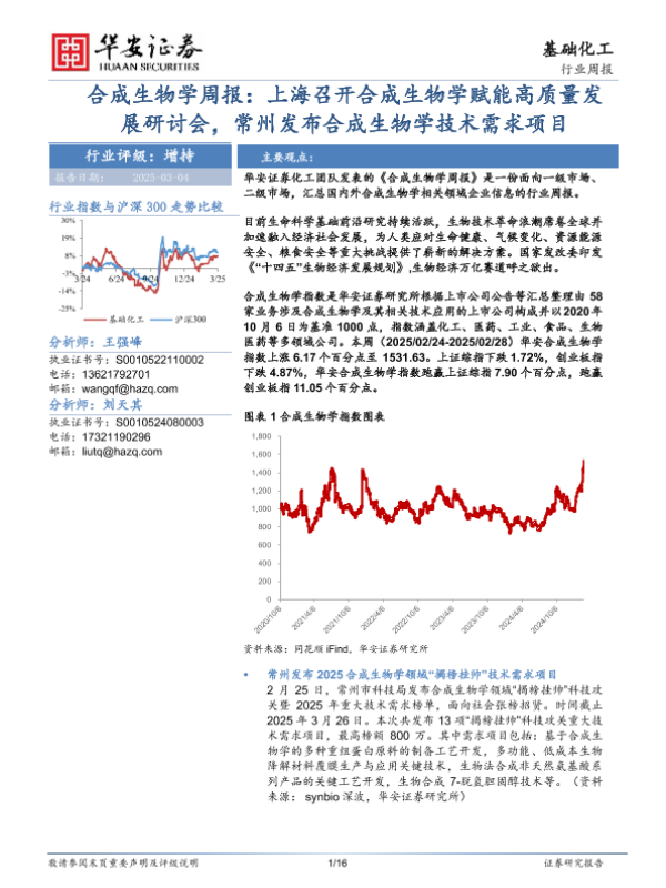 【华安证券】【20250304】华安证券-合成生物学周报:上海召开合成生物学赋能高质量发展研讨会,常州发布合成生物学技术需求项目-16页