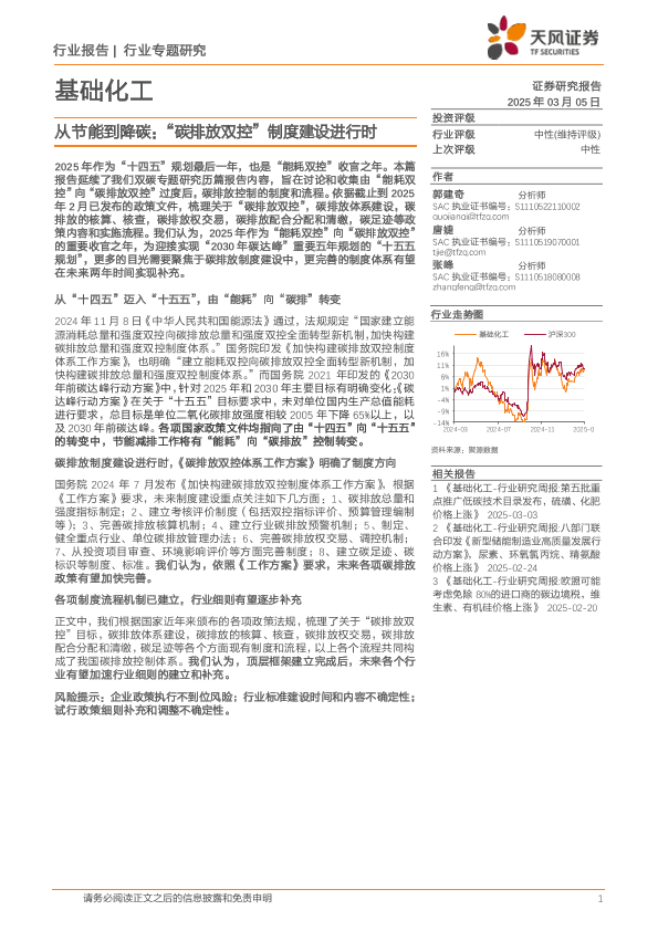 【天风证券】【20250305】基础化工行业专题研究:从节能到降碳:“碳排放双控”制度建设进行时-14页