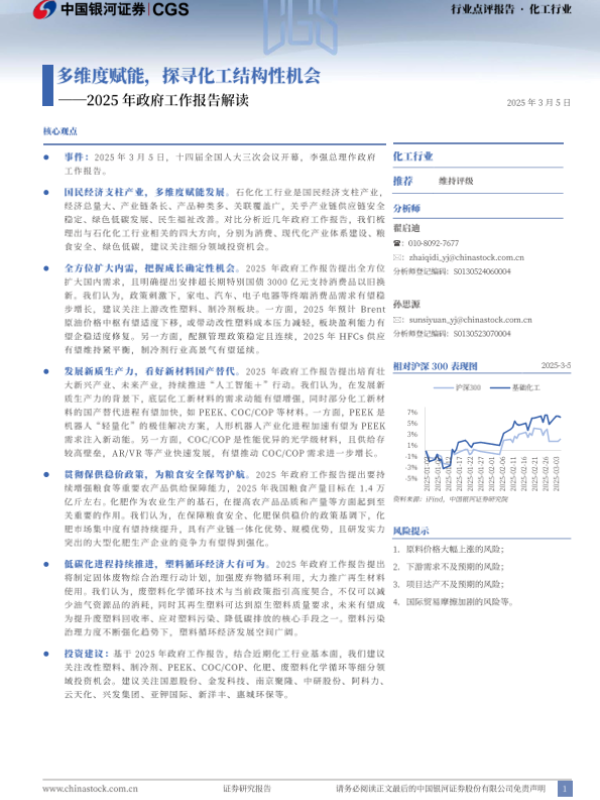 【银河证券】【20250305】2025年政府工作报告解读:多维度赋能,探寻化工结构性机会-10页