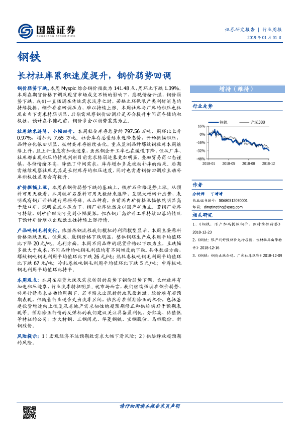 【国盛证券】【20190101】20190101-国盛证券-钢铁行业周报:长材社库累积速度提升,钢价弱势回调-10页