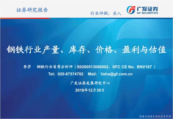 【广发证券】【20181230】钢铁行业产量、库存、价格、盈利与估值-25页