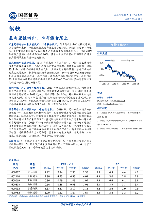 【国盛证券】【20190101】20190101-国盛证券-钢铁行业策略:盈利理性回归,唯有能者居上-35页