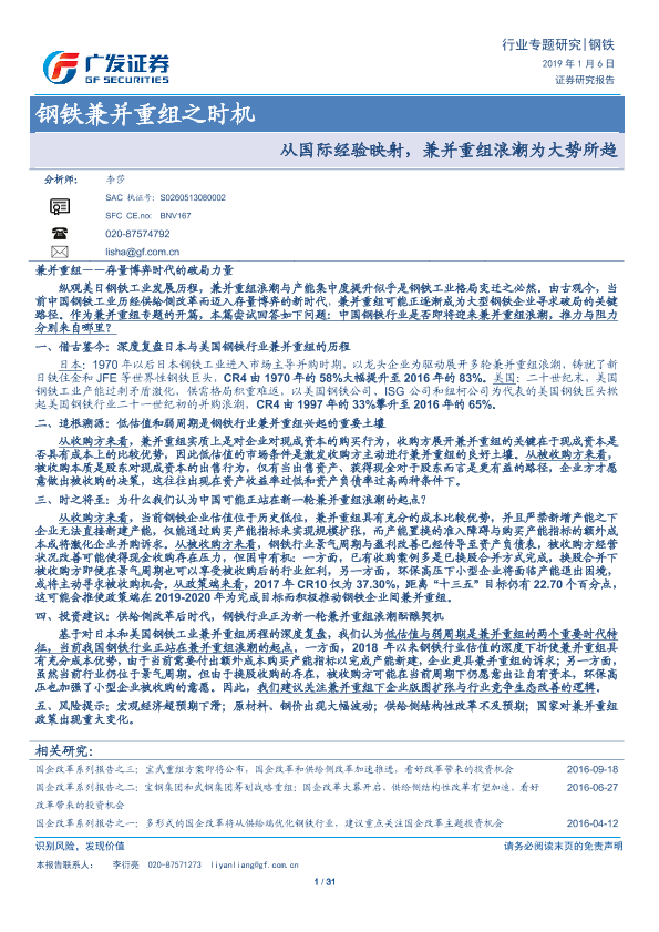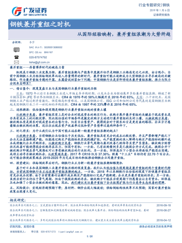 【广发证券】【20190106】钢铁兼并重组之时机行业专题研究:从国际经验映射,兼并重组浪潮为大势所趋-31页