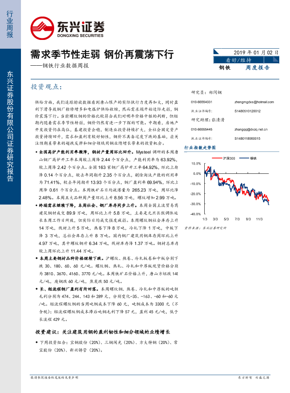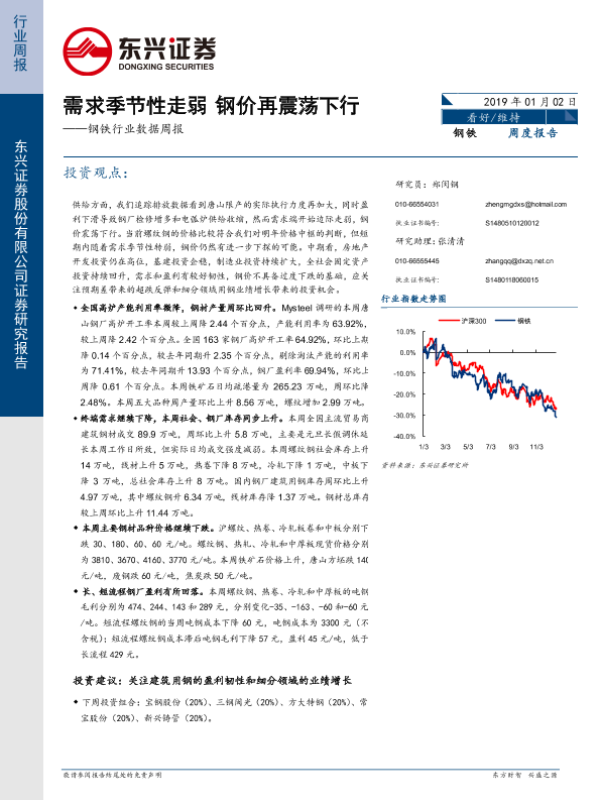 【东兴证券】【20190102】20190102-东兴证券-钢铁行业数据周报:需求季节性走弱 钢价再震荡下行-21页