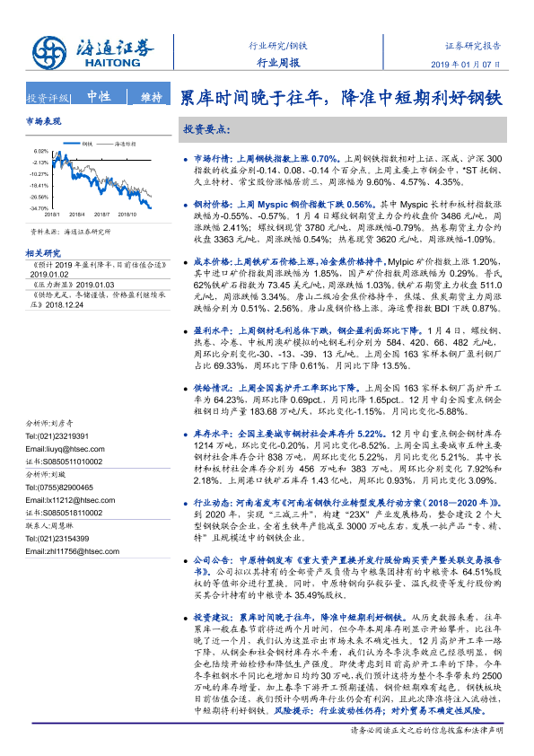 【海通证券】【20190107】20190106-海通证券-钢铁行业周报:累库时间晚于往年,降准中短期利好钢铁-19页