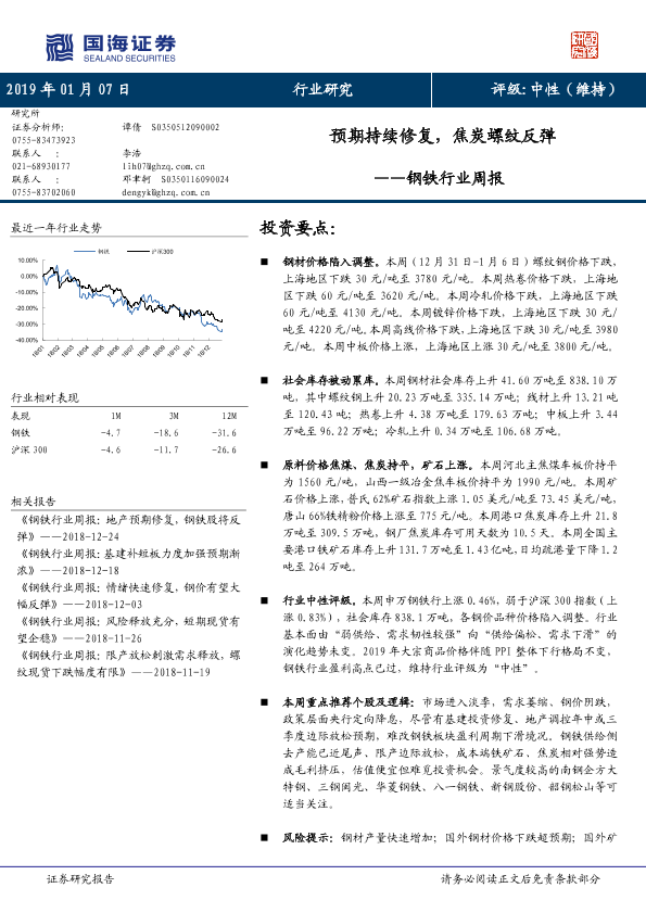 【国海证券】【20190107】20190107-国海证券-钢铁行业周报:预期持续修复,焦炭螺纹反弹-14页