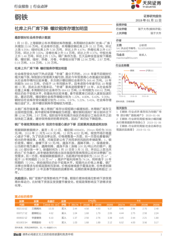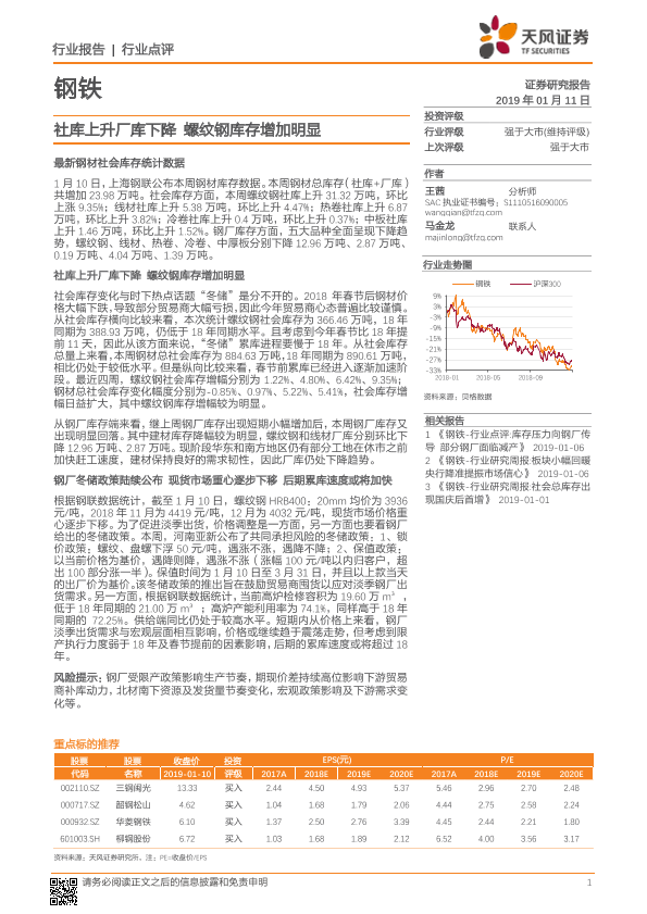 【天风证券】【20190111】社库上升厂库下降 螺纹钢库存增加明显-2页