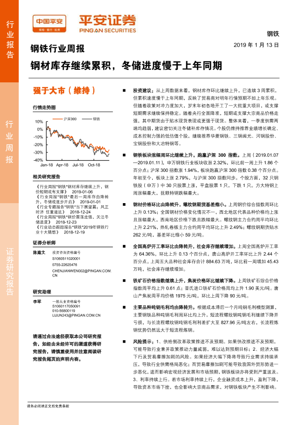 【平安证券】【20190113】20190113-平安证券-钢铁行业周报:钢材库存继续累积,冬储进度慢于上年同期-17页