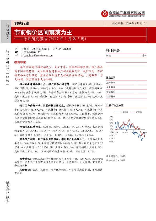 【浙商证券】【20190113】钢铁行业周报(2019年1月第2周):节前钢价区间震荡为主-16页