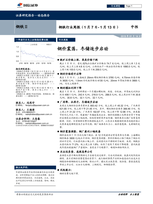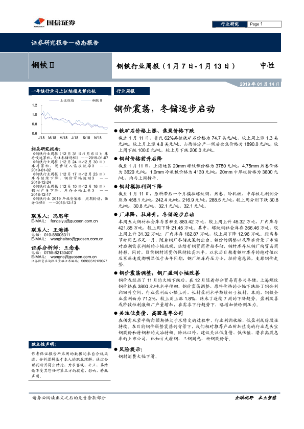 【国信证券】【20190114】20190114-国信证券-钢铁行业周报:钢价震荡,冬储逐步启动-14页