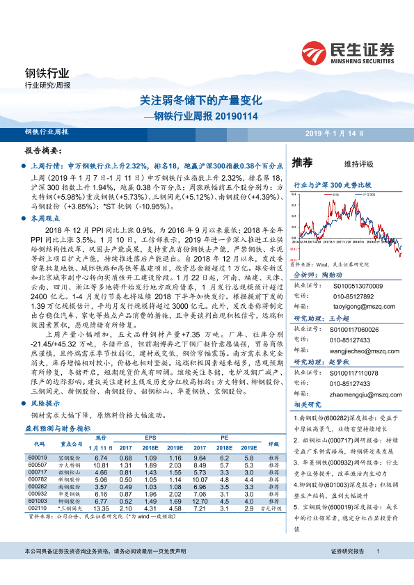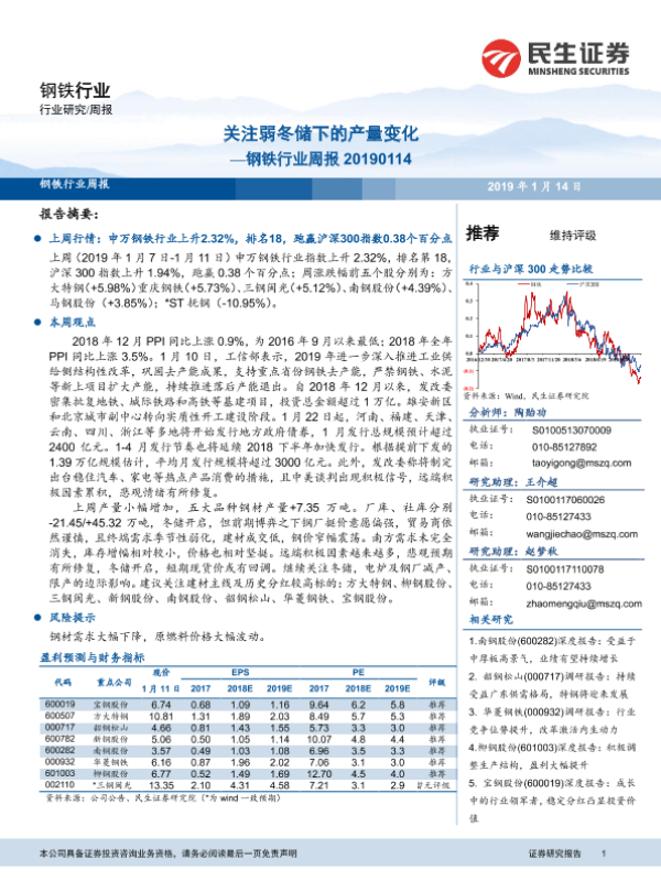 【民生证券】【20190114】20190114-民生证券-钢铁行业周报:关注弱冬储下的产量变化-23页