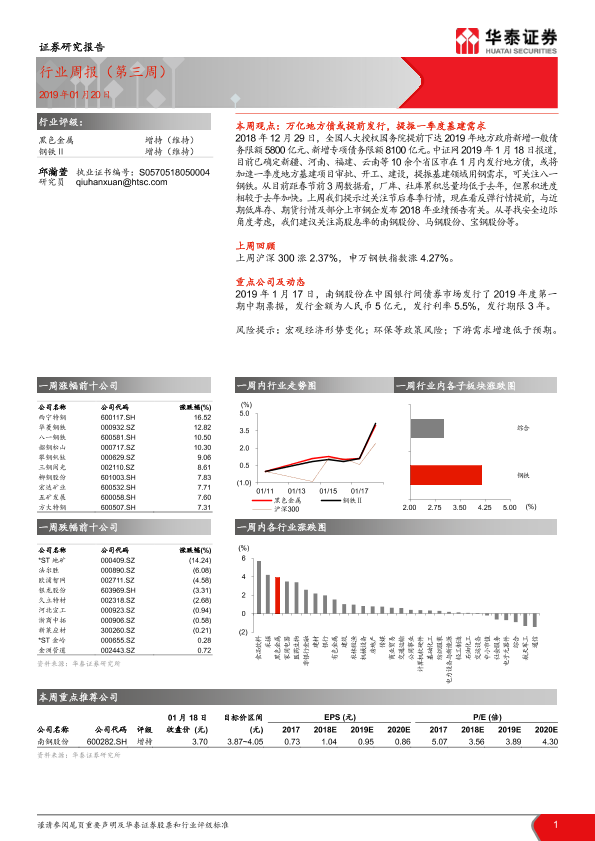 【华泰证券】【20190120】20190120-华泰证券-黑色金属行业周报(第三周)-22页