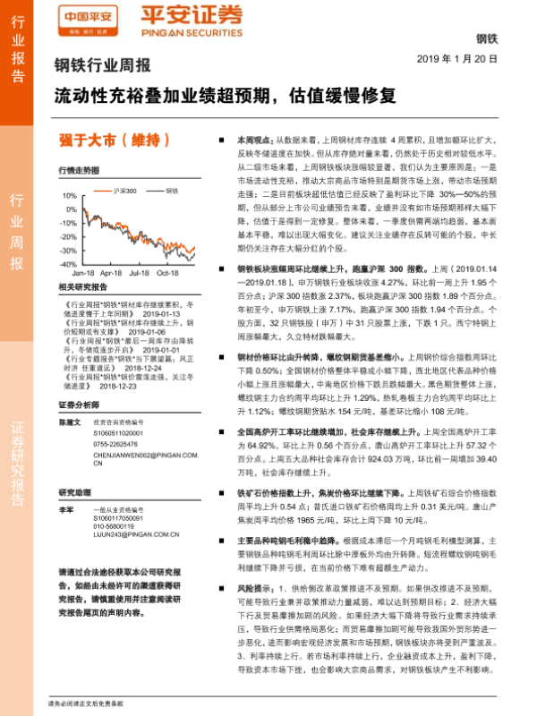 【平安证券】【20190120】20190120-平安证券-钢铁行业周报:流动性充裕叠加业绩超预期,估值缓慢修复-16页