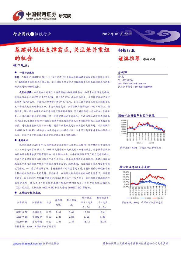 【银河证券】【20190122】20190122-中国银河-钢铁行业周报:基建补短板支撑需求,关注兼并重组的机会-23页