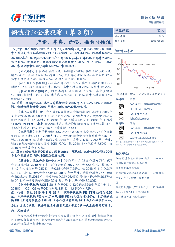 【广发证券】【20190127】20190127-广发证券-钢铁行业全景观察(第3期):产量、库存、价格、盈利与估值-24页